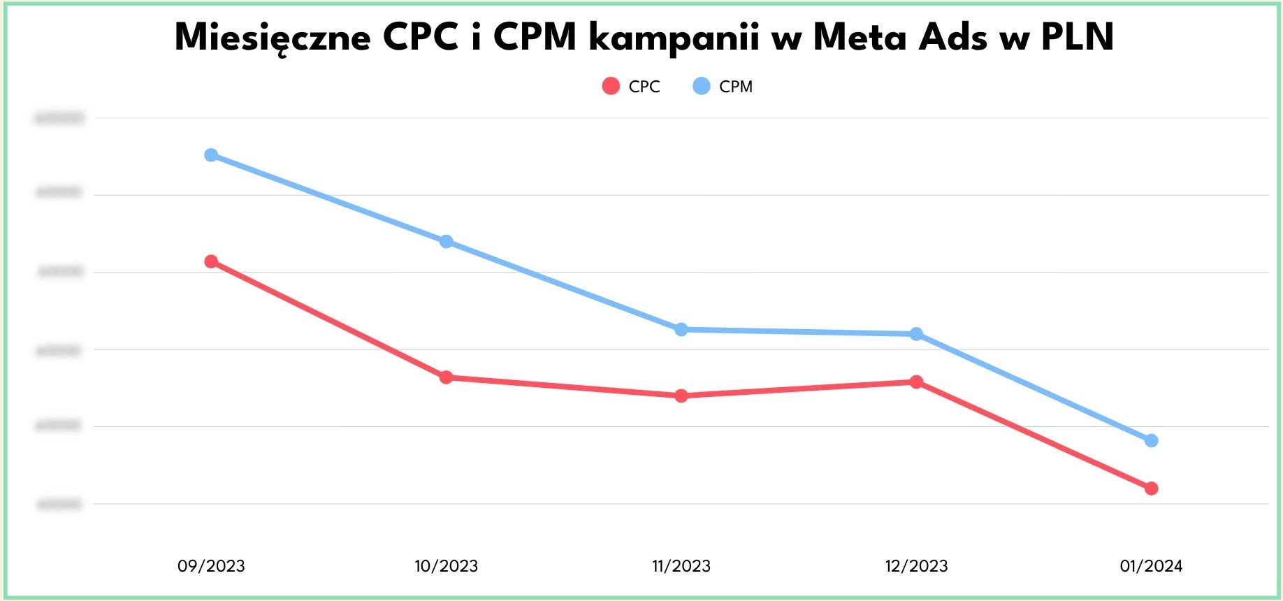 - Koszt za kliknięcie (CPC) obniżył się o 41%,