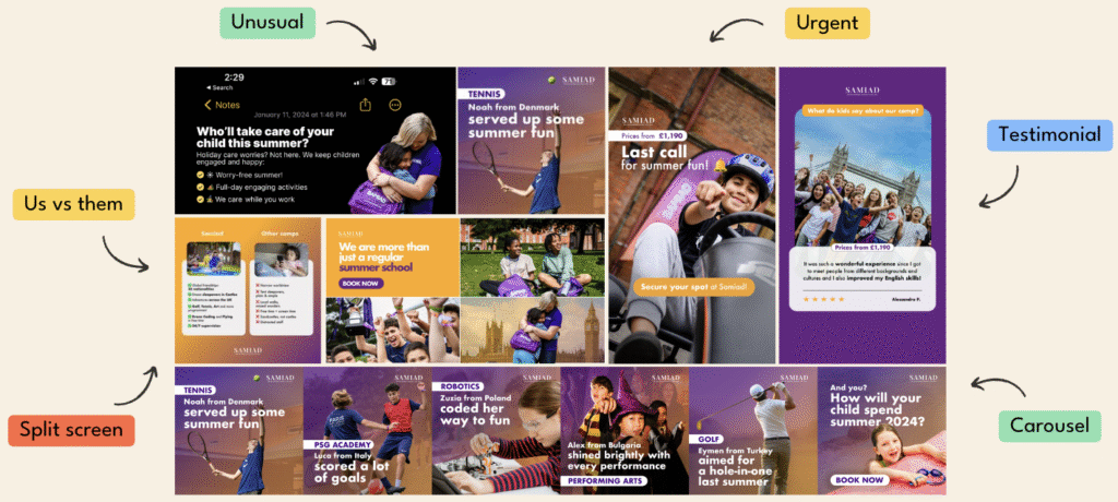 Kolejnym filarem naszych działań była strategia kreatywna dla kampanii w Google Ads i Meta Ads. Zamiast kilku stałych bannerów działających przez cały sezon, postawiliśmy na testy i iteracje: od wideo po kreacje oparte na social proof. Różnorodność i testowanie kreacji pozwoliły nam na regularne optymalizowanie kampanii i odświeżanie komunikacji, co miało szczególne znaczenie przy ograniczonym budżecie.