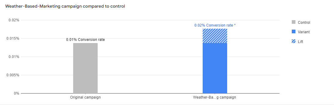 To measure the impact of weather-based advertising, we ran A/B tests comparing Weather-Based Marketing campaigns to always-on standard campaigns. The results were impressive: weather-targeted campaigns saw a 76.17% higher Conversion Rate in the UK and a 28.37% boost in Germany, with a 90% confidence level.